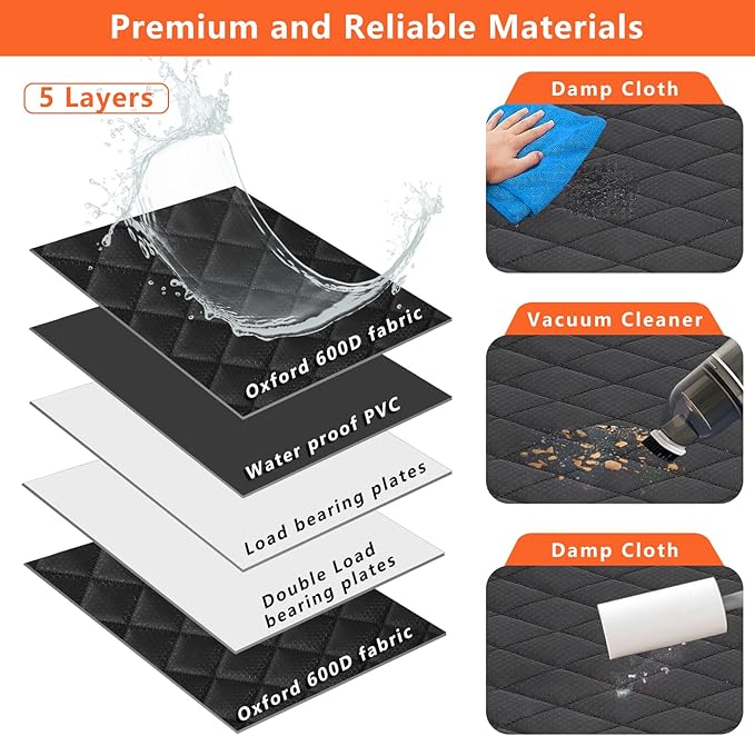 - 【Hard Bottom Design& Waterproof Non-Slip】: Crafted from durable 900D Oxford fabric with a PVC waterproof coating and non-slip backing. The five-layer design for hard Bottom turns all the space in the back seat into a resting space for dogs. The back seat becomes a car bed, ensuring stability and comfort for your pet.