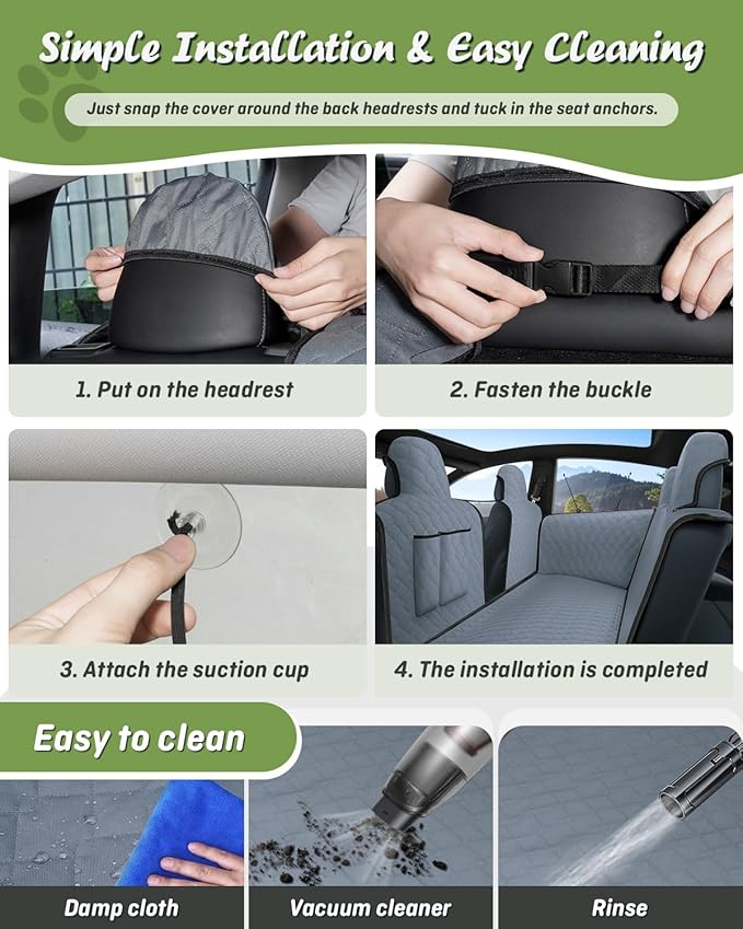 - 【Simple Installation and Easy Cleaning】Designed for seat belt use, simply snap the cover around the back headrests and tuck in the seat anchors for a quick and hassle-free installation. Clean with a damp cloth, mild soap, or vacuum, and it's also machine washable for added convenience.