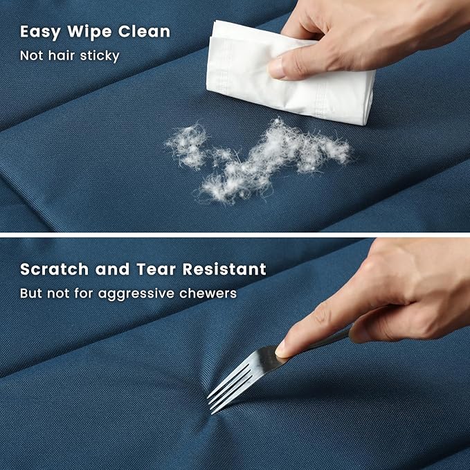 • Waterproof 900D Oxford: Waterproof dog crate bed. Tightly wowen 900D Oxford, scratch-resistant and waterproof, perfect for indoor and outdoor. No matter where you are, you can always give pets a clean place to rest and enjoy every moment of life