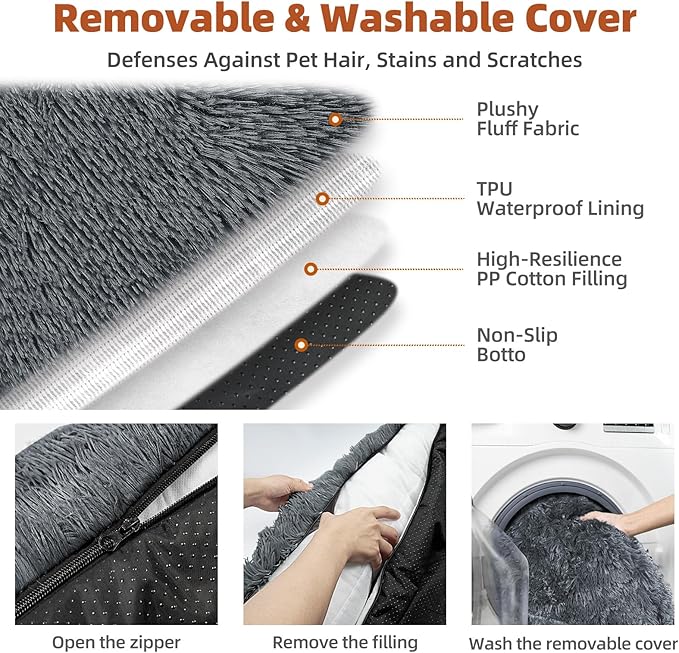 - WATERPROOF AND HASSLE-FREE CLEAN - Our dog couch bed features a zippered cover which is machine-washable and dryer-friendly. Its waterproof liner prevents the penetration of unwanted accidents.This is a very useful feature for older dogs and puppies.
