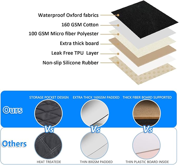 - PU COATING POLYESTER: NOW WITH UPGRADED THICKER PADDING, our Truck Seat Cover For Dogs - XXL Pet Seat Cover is made of quality polyester with PU coating that never gives off odor in a car. Many others use PVC polyester coating that becomes smelly in the hot weather and also has a high content of heavy metals, such as Lead and Cadmium. PVC coating starts wearing off after several days of use. A durable PU coating feels much softer and much more comfortable.