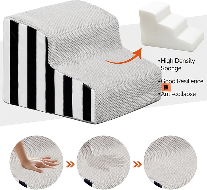 - Sturdy Design:Slope design is easy to climb. Breathable and Soft fabric provides a plush and cozy feel, non-slip bottom design making your pet's journey up and down the stairs enjoyable