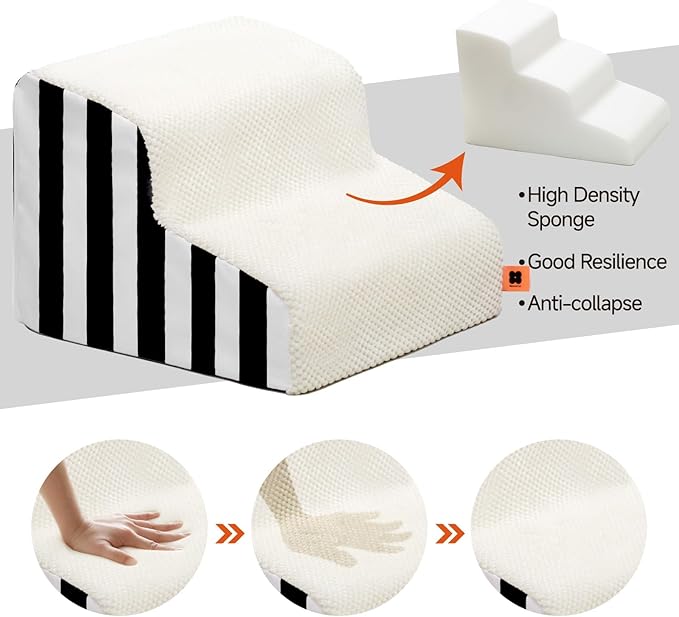 - Sturdy Design:Slope design is easy to climb. Breathable and Soft fabric provides a plush and cozy feel, non-slip bottom design making your pet's journey up and down the stairs enjoyable
