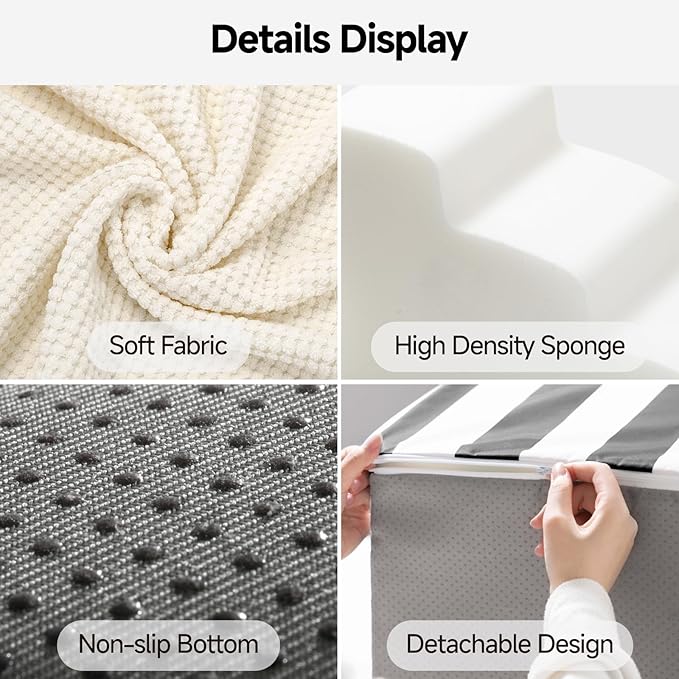 - Easy Cleaning:With removable washable covers secured by zippers, cleaning and maintaining your dog stairs is a breeze