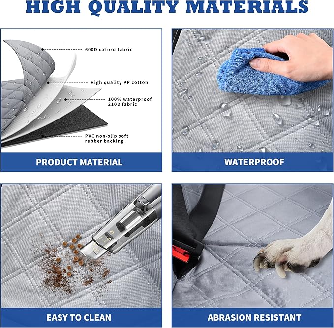 - PET PROTECTION - SAFETY FIRST - 100% Waterproof, Slip-Resistant And Scratch-Proof, The hard bottom dog car seat cover is made of 6 layers of fabric and a high-density fiberboard, scratch-proof and waterproof, fully protecting your car seats from scratches, dirt and pet drool