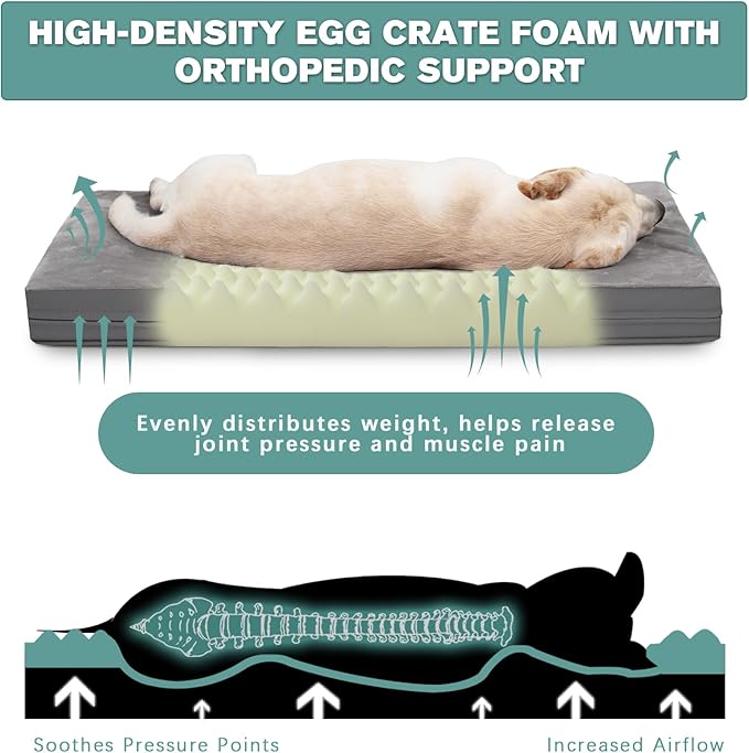 - ORTHOPEDIC SUPPORT: Vonabem orthopedic dog bed is filled with high-density egg crate foam. It provides sufficient support for the spine, helps release joint pressure, alleviates muscle pain and promotes deep sleep, which is a great choice for elderly dogs or pets with discomfort.