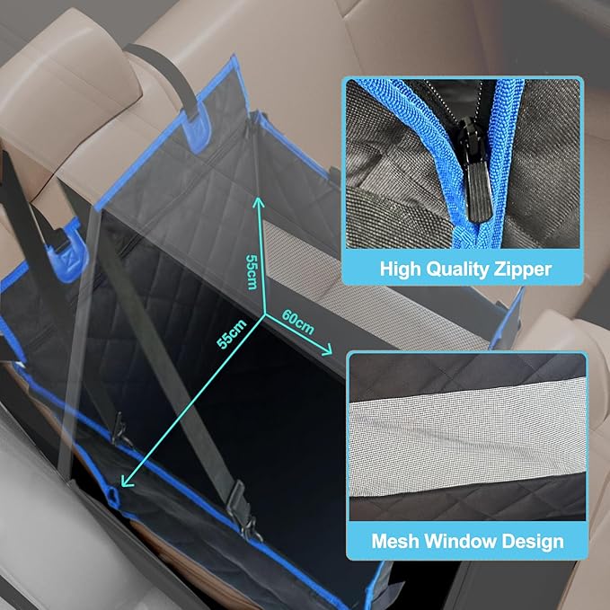 - 【 Durable and Well-ventilated】Made of 600D scratch-resistant Oxford fabric, this dog car seat is waterproof and highly durable. The dense mesh on both sides is claw-resistant and breathable, providing a comfortable and secure environment for anxious pets. The unique design with a low front and high back allows easy observation of your furry child in the car seat.