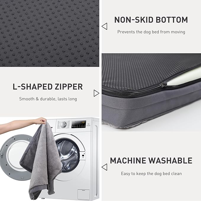 - Orthopedic Support - Our dog crate bed equips a 3-inch thick high-density egg crate foam, which helps evenly distribute our dog's weight, comfort our dogs with strong support to bones and joint, effectively relieves joint pain and arthritis, encourages deep and restful sleep, especially for puppies and older dogs.