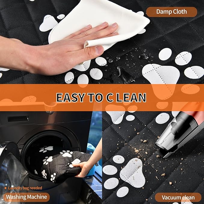 - Waterproof and Scrachproof Material: Crafted from durable 600D Oxford material, our dog back seat cover is 100% waterproof and scratch resistant. And with the non-slip rubber backing at the bottom and seat anchors, it stays securely in place, preventing any sliding around during travel.