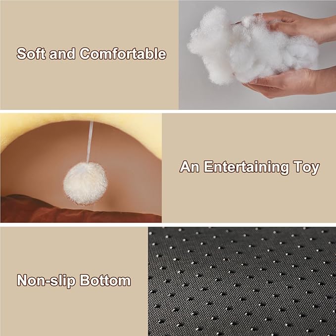- 【Cat Bed Indoor】A furry ball hanging from roof, which can attract the cat's & kitten's attention and get used to the new bed.