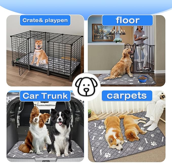 - 【Safety & Non-Slip backing Design 】The anti-slip silicone design of the bottom layer allows the waterproof dog mat to stay on the floor or carpet, keeping your pet safe. Puppy pee pads also protect your floors and furniture from scratches and dirt, providing a dry and comfortable home environment.