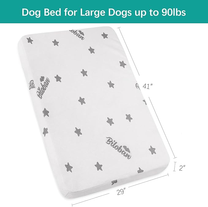 - Multi-use Extra Large Size Bed: This xl dog bed furniture measures 41"L x 29"W x 2"H, originally marketed for baby playard mattresses, we found this waterproof mattress works great for pets, it can be used as a dog bed or pad in crate, kennel, living room, bed room, sofa or as a dog travel bed in a car or truck. The large dog bed comes with a storage bag, ideal for camping, road trips, patios and any outdoor or indoor spaces.