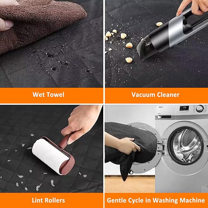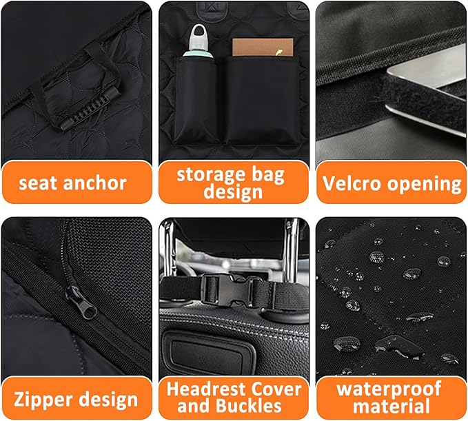 - 【Easy installation】: Easy to install and and remove, convenient for pet owners who want to quickly clean or store the cover when not in use. There is lots of velcro in the back of the rear seat cover, put the velcro in corresponding position, then stick the velcro and fix the elastic strap buckle on both sides of the seat headrest, 2 insert seat anchors tuck into the gaps between the back seats, finish the completed installation. The retractable straps with suction cups can be secured to the sunroof glass.