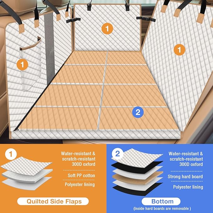 - 【No More Pets Falling】One year Quality warranty.Please feel free to email us if any question or problem. The back seat cover for dog features sturdy bottom board, which is strong enough to support your dog with dog safety seat belt to prevent your pet from sliding during drive.