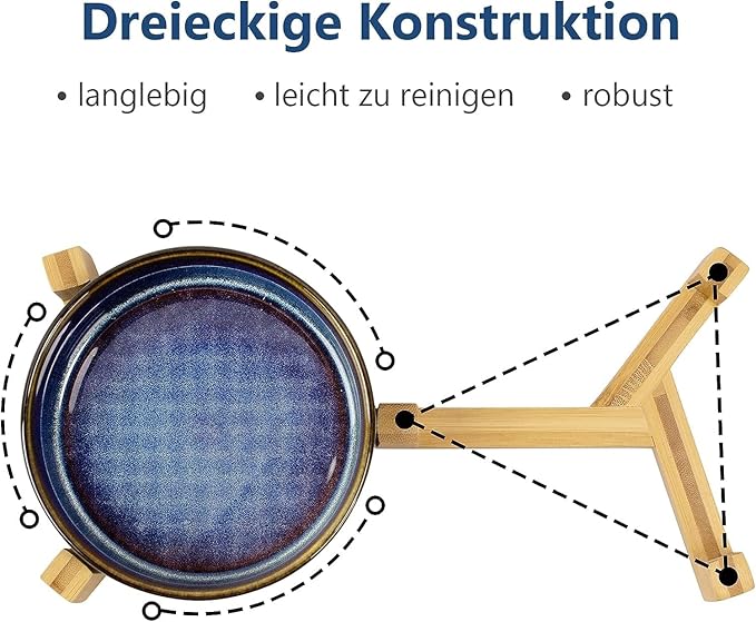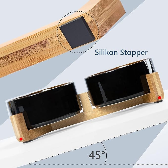 • [Double Bowl Design]:One dog bowl for food and one for water, Each ceramic cat bowl has a Unique wooden stand, raising the dishes closer to your pet for more comfortable eating