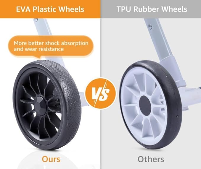 - SAFE & COMFORTABLE PET STROLLER - Our pet stroller use superior TPU rubber wheels, Compare with others EVA plastics wheels, shock absorption and wear resistance are better. The dog stroller has 4 airless tires that have front and rear spring shock absorbers, reducing vibration and maximizing stability from uneven roads. Built-in bearings, 360°rotating front wheel. Has a one-foot brake that can easily stop the dog strollers.