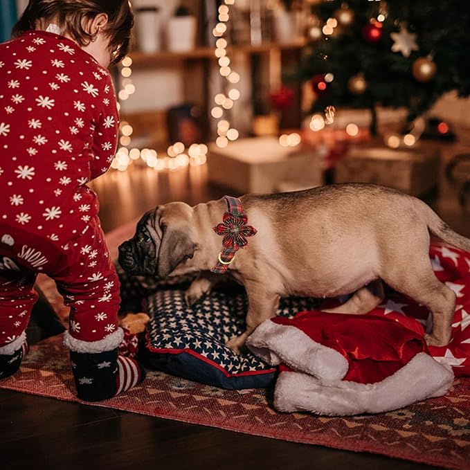 - CHRISTMAS DOG COLLAR: The Christmas Plaid is perfect for showing off your pup's beauty and personality on holiday, instead of just the basic black or red dog collar you see everywhere else.You can see matching leash, dog bandana in Elegant little tail store.