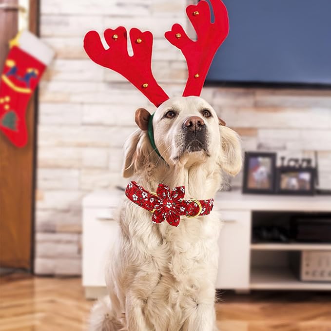 - CHRISTMAS DOG COLLAR: The Christmas Flower is perfect for showing off your pup's beauty and personality on holiday, instead of just the basic black or red dog collar you see everywhere else.You can see matching leash, dog bandana in Elegant little tail store.