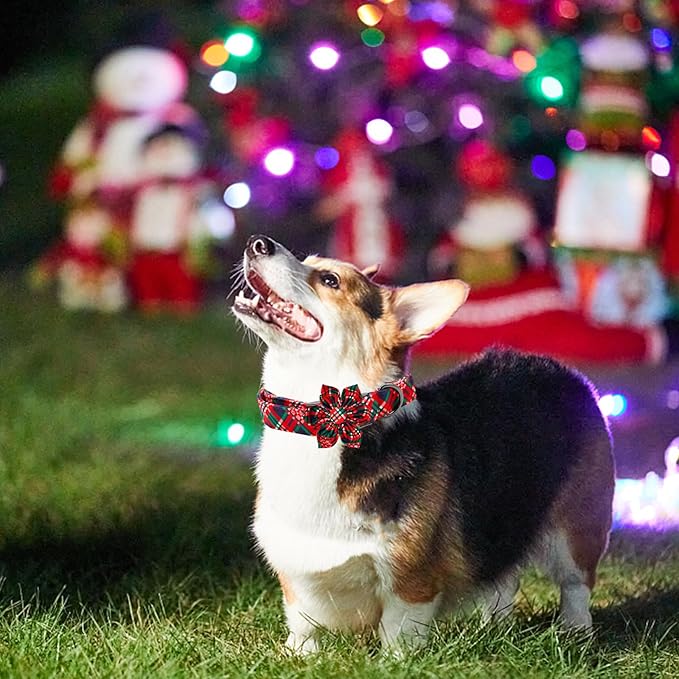- CHRISTMAS DOG COLLAR: The Christmas Plaid is perfect for showing off your pup's beauty and personality on holiday, instead of just the basic black or red dog collar you see everywhere else.You can see matching leash, dog bandana in Elegant little tail store.
