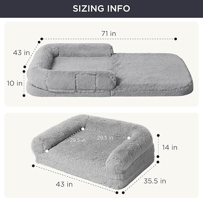 • Orthopedic Support for Ultimate Comfort: Enjoy rejuvenating rest on our Foldable Human Dog Bed, high-density egg crate support foam. This innovative design evenly distributes weight, ensuring optimal pressure relief and joint support for both you and your furry friend.