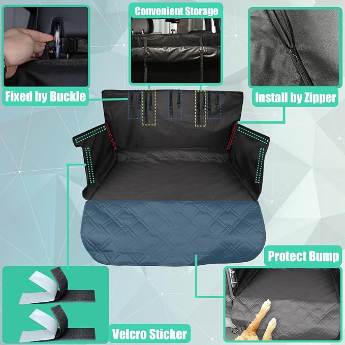 - [Premium Quality Materials] - Luxury pet cargo liner covers are modern and easily match your vehicle interior. Pet cover is incredibly strong and padded with thick materials that are made for long-term use. Infused with Color-Fast layers preventing color bleeding, Free of AZO dyes, and can withstand extreme temperatures without damaging your vehicle