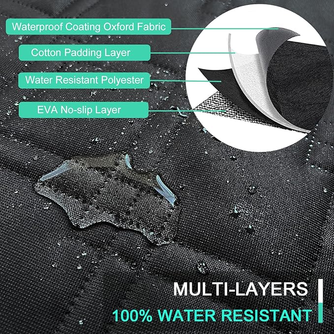 - [Heavy Duty Protection] - Defend your cargo and trunk area against muddy paws, dirty debris, spills, stains, scratches, groceries, heavy equipment, beach sand, hair & fur and other unwanted accidents. Our cargo liner is crafted with 2x stitched quilted for durability and made with premium GSM Oxford material that Guarantees Lifetime Satisfaction