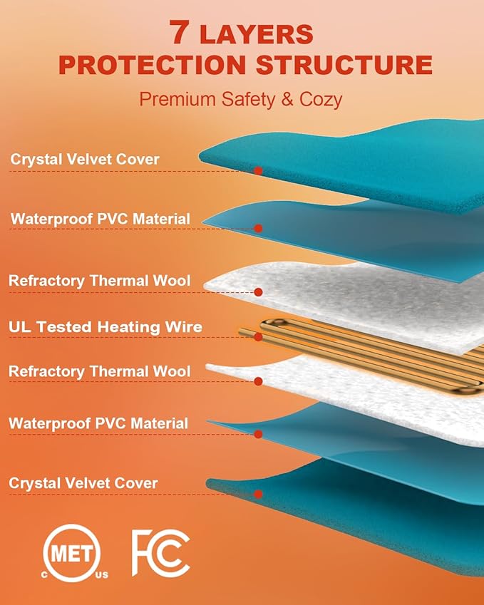 - 𝗦𝗲𝗰𝘂𝗿𝗲 & 𝗦𝗶𝗺𝗽𝗹𝗶𝗳𝗶𝗲𝗱 𝗠𝗮𝗶𝗻𝘁𝗲𝗻𝗮𝗻𝗰𝗲 - Our heated dog blanket is a haven of safety and comfort. Featuring a 11-layer protective structure with UL-tested heat wire. Crafted from retardant materials and ensures both waterproof and flame-resistant properties