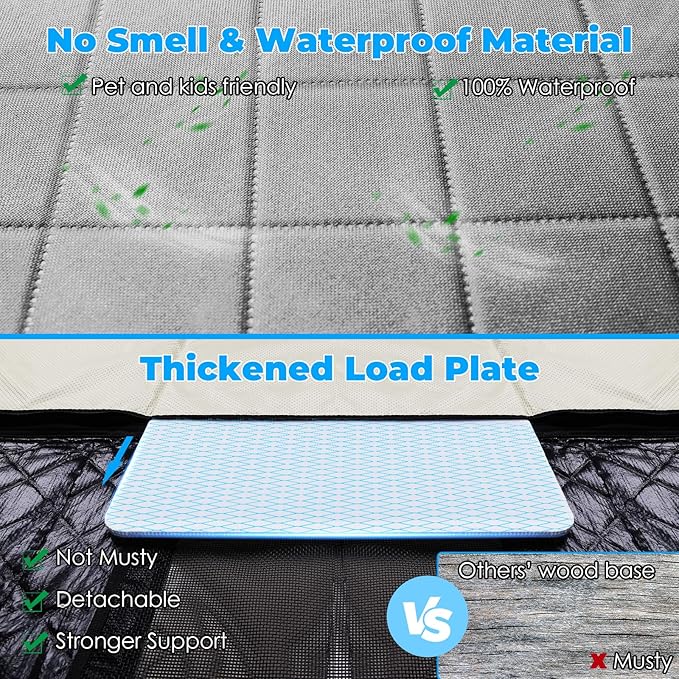 - No Smell Material: The dog car seat cover for back seat without terrible smell is friendly for pets and children. In an enclosed car space, no terrible smell is also important to keep you focused and driving safely, something that others' dog covers on the market ignore. The thickened PP hollow board plate is more durable than others' wood base