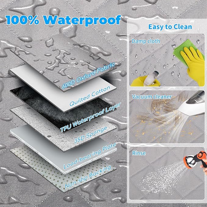 - Ultimate Comfort: The padded hard bottom is built in 6-layer protection to make your dogs feel much more comfortable while traveling in the car. The hard plate is covered with a layer of 35D sponge to enhance comfort, and held in place by premium non-woven fabric, so it's easy to remove for easy cleaning of the dog car seat cover