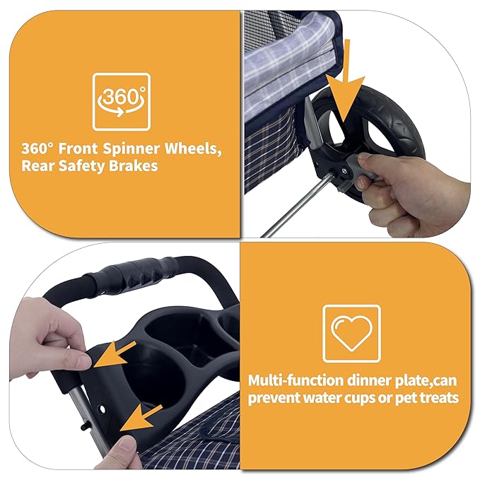 - Moves Silkly: 360-degree swivel front wheels allow you to maneuver easily over most terrain while providing a smooth and gentle ride for your pet with a weight limit of 33 pounds