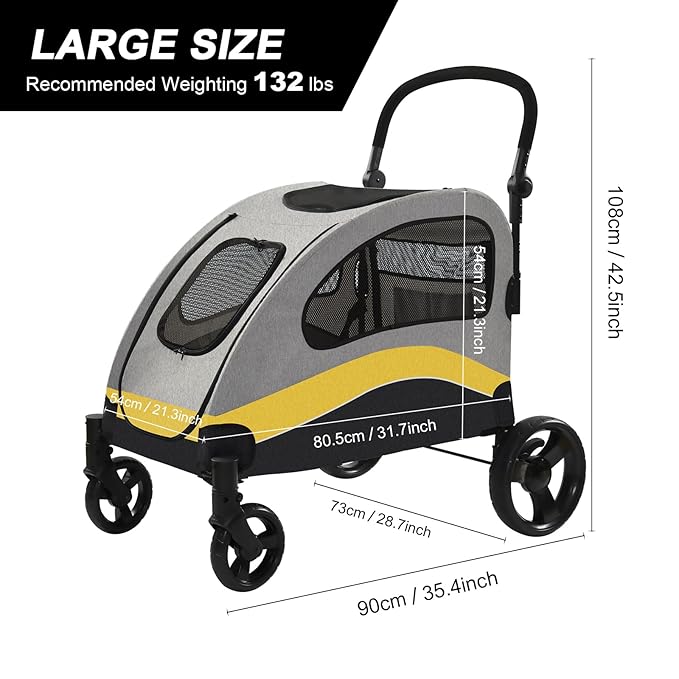 - Large Capacity of Pet Wagon】: The extra large dog strollers with spacious cabins can easily fit small dogs, medium dogs and large dogs up to 120lbs. It's especially friendly for someone who has a large pet , you can use this pet stroller to take your dog for vet visits/subway/shopping/hiking/traveling without having to carry them.
