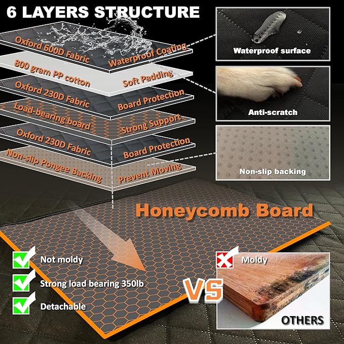 - 【Waterproof, Anti-Scratch, Non-slip Material】The dog car seat cover for back seat is waterproof and anti-scratch. The surface material is easy to clean after getting dirty, both hand wash and machine wash are available. Non-slip design at the backing is used, the dog car hammock is not easy to move, and the dog in the dog hammock for car is not easy to slide. The pet car seat is made of thicker, hard-wearing fabric, so it is more sturdy. High quality zipper is applied for sturdy use.