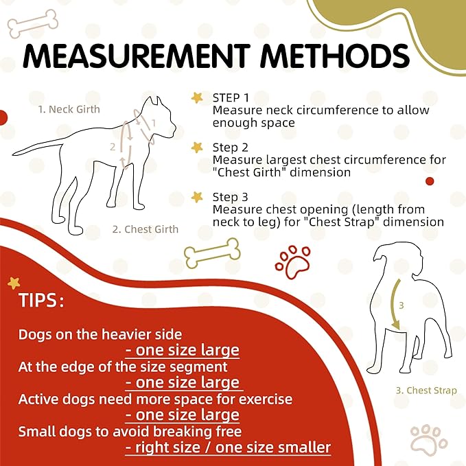 - 【4 Sizes Option】Pawhuggies no pull Dog harnesses are available in 4 sizes. Please wrap the tape around the widest part of your dog's torso to measure the Chest Girth. Right behind the front legs. For the comfort & fit of your pet remember to leave some space between dog and dog harness