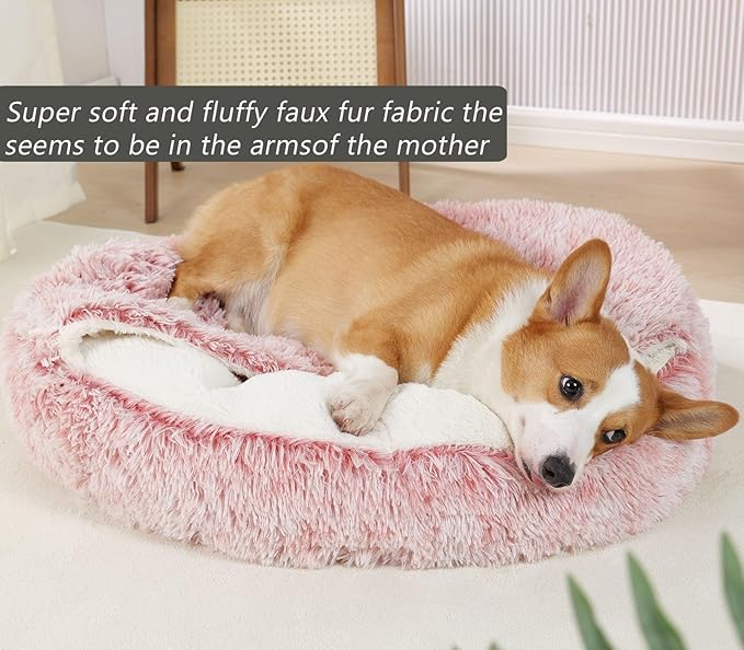 - 【Highly Quality】 Cozy, furry and soft plush, a self-warming fluffy calming dog bed is reminiscent of a mother's fur coat. Cat bed cave internal sleeping Surface with super soft short plush fabric can well protect your pet's paws, deep filled with high resilience 'pp' cotton. it With strong support and Resilience, to ease the muscle soreness and joint pain for your loyal friend.the exterior is made of soft long-haired plush, it looks namely cute and warm, which is an ideal resting place for pets.