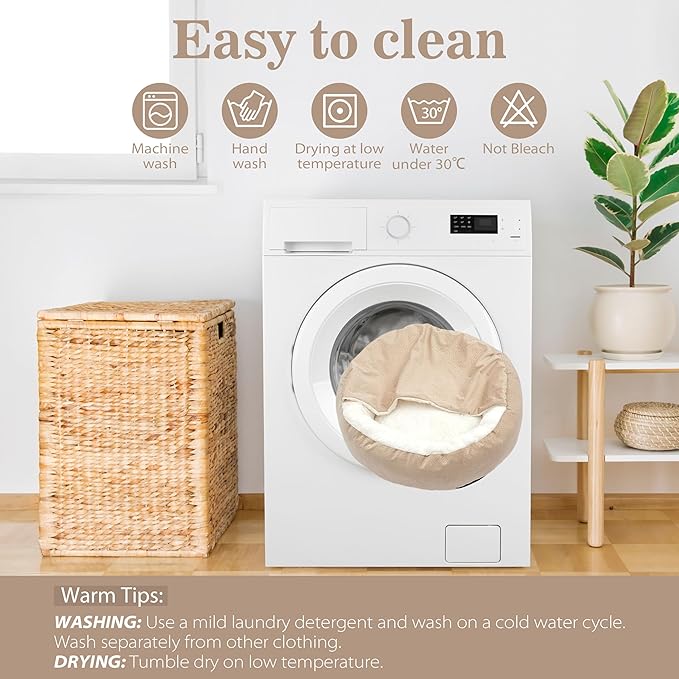 - Practical: The blanket-integrated design makes the cat bed more enclosed and comfortable, giving pets a private and warm resting space. They can sleep directly on the blanket or hide in the bed. The blanket is integrated with the pet bed and cannot be removed, which increases the overall stability of the structure.