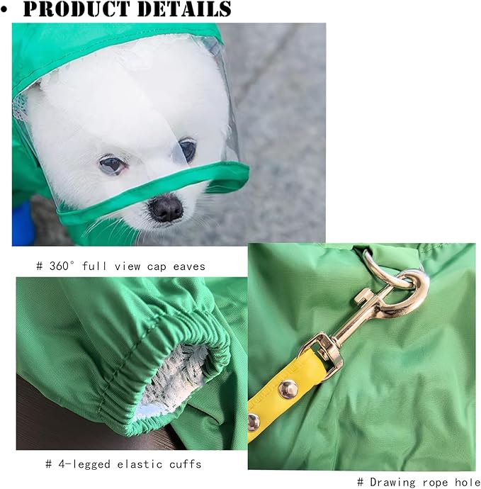 - 【What You Get】High-quality Dog Raincoat and 1.25m FREE PU Leash. It's a nice choice for your cute pet dog or other animals to wear a pet raincoat enjoy a happy time.If there are any issues with the size or quality of the pet raincoat, we support Free Return or Replacement with No Reason, welcome guide, our worry-free 12-month warranty, warm and friendly customer service