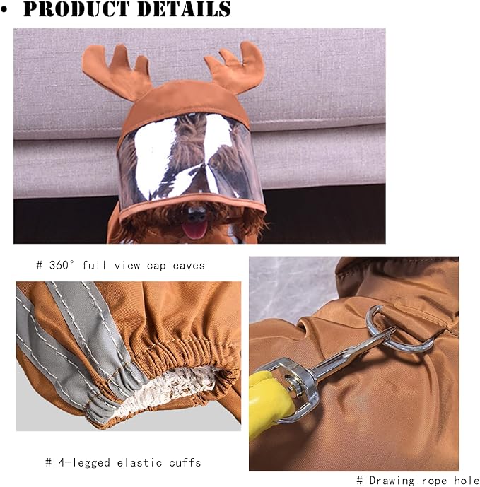 - 【What You Get】High-quality Dog Raincoat and 1.25m FREE PU Leash. It's a nice choice for your cute pet dog or other animals to wear a pet raincoat enjoy a happy time.If there are any issues with the size or quality of the pet raincoat, we support Free Return or Replacement with No Reason, welcome guide, our worry-free 12-month warranty, warm and friendly customer service