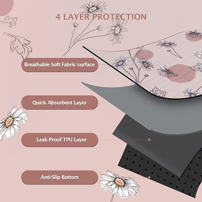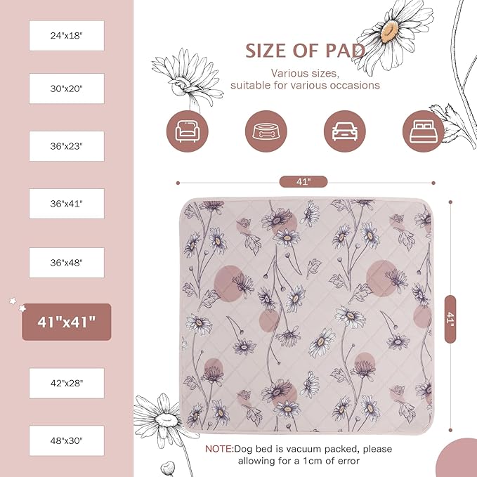 - 【Fashion and Non-slip】 Our daisy design makes this reusable pee pads for dogs very cute and makes your room more stylish. And the soft and comfortable puppy pee pads with anti-skid bottom can achieve a certain fixed effect.The bottom is waterproof and you can place it anywhere you want.