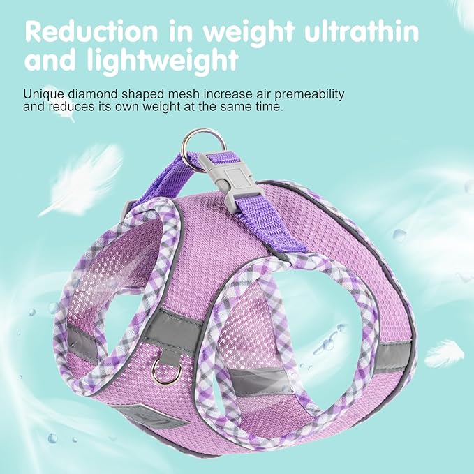 - Light & Breathale; The dog harness is made with jacquard fabric, which is high-density, breathable, three-dimensional, soft and comfortable, and can prevent chewing or tearing. It has extremely high durability, tensile resistance, tear resistance and fusion resistance. It has the characteristics of moisture absorption and perspiration, creating dryness, giving pets an extraordinary wearing experience.