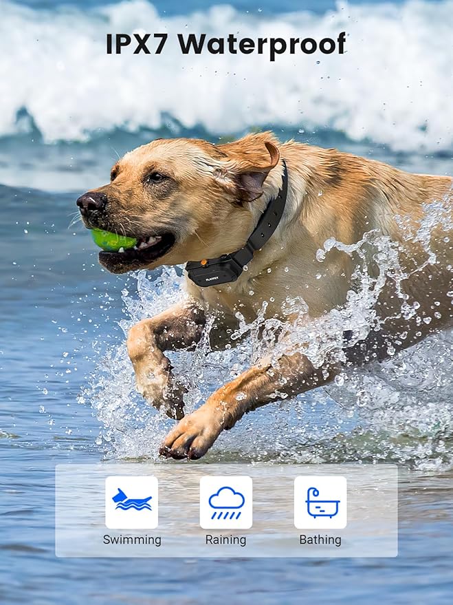 - IPX7 Waterproof: The IPX7 waterproof receiver allows your dog to enjoy water activities without hesitation (Note: Ensure the receiver's charging port is securely closed to prevent water; the remote control is not waterproof).