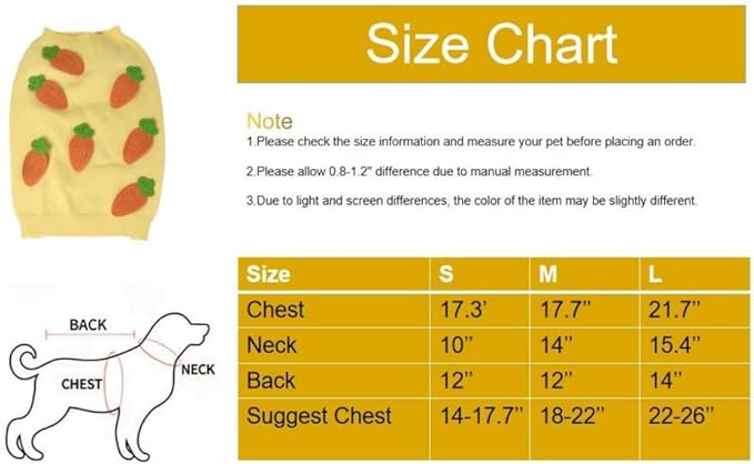 - 【Cute style】Fashion cute look! Dogs or cats wear this sweater with carrots for a cute and eye-catching look. Always ready for any occasions, daily activities, photoshooting.