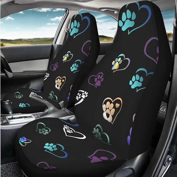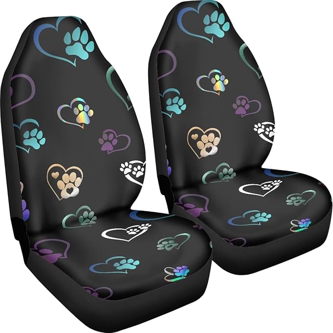 Colorful Heart Dog Paw Print Car Seat Covers Full Set of 2