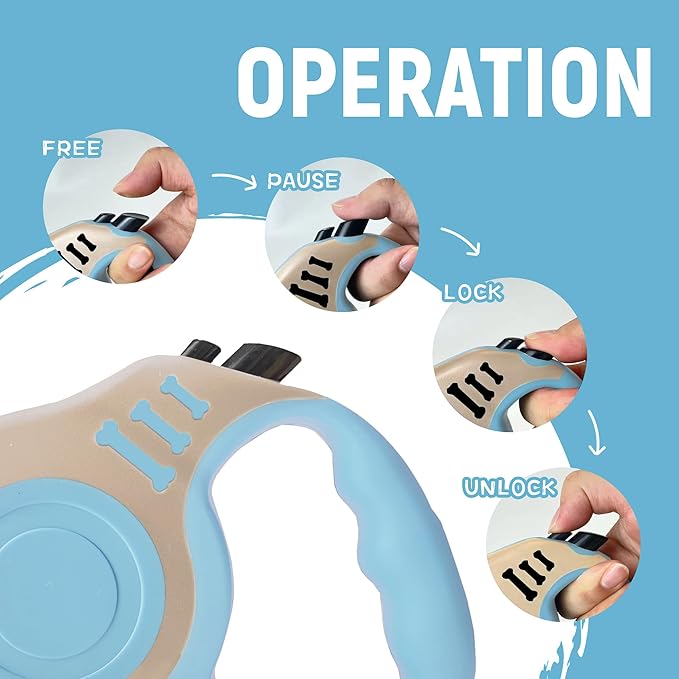 - Retractable dog straps that extend to 10/16 feet. The rope is durable and not easy to break. Comfortable grip design in line with the comfortable grip design, long time holding hands won't be tired