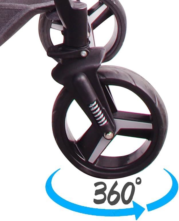 - Smooth Glide, Easy Control: Maneuver with ease using the four 360°swivel wheels, including two rear wheels with brakes for secure control. The unique shock-absorbing design minimizes bumps, and the wear-resistant construction ensures a prolonged lifespan, making every stroll a smooth and enjoyable experience.