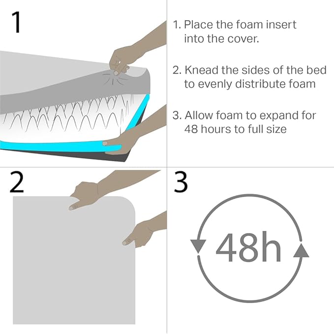 • Waterproof, removable cover: The bed cover is waterproof and machine washable and tumble dry on low heat.