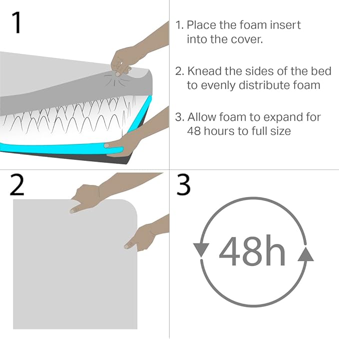 - Waterproof, removable cover: The bed cover is waterproof and machine washable and tumble dry on low heat.