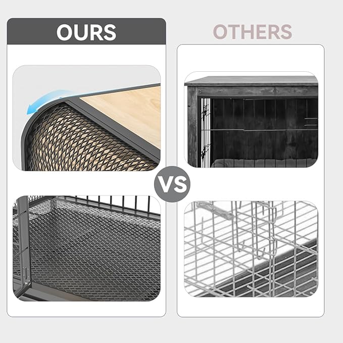 - 【2024 New Upgrade】: Upgraded dog crate furniture suitable for puppy,samll dogs,Teddy, Yorkshire, Chihuahua, Pitbull, Bichon Frise, Schnauzer or other small animal rabbits, ducks, dutch pigs, chickens,it use steel mesh rounded corners design different it from straight wood to avoid damage from pet chewing. Rounded design is more beautiful, can be used as decor furniture, endtable, become a good decoration for your house.