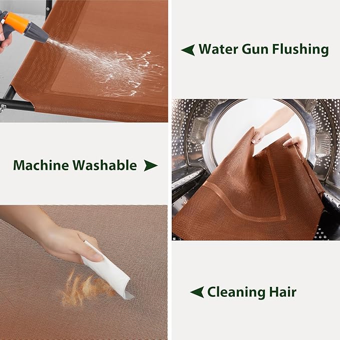 • 【DOG BED EASY CARE】: This cooling Elevated dog bed is super easy to clean. pet hair,vomit,and dust can be easily wiped with Wash the mesh with tap water,a hose, or a damp towel.When cleaning the entire mesh,Please use mild soap or natural cleaning agents for complete cleaning.which is convenient and quick.No worry about pet odors, dirt,or excessive hair anymore,(Remember to separate the shampoo for the U-shaped pillow )