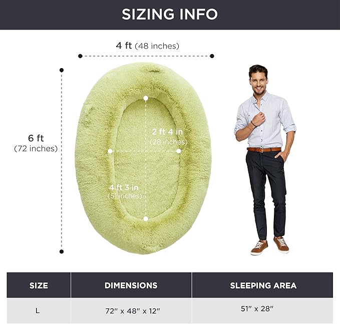 • Orthopedic Support for Superior Comfort: Experience dreamy, restorative sleep with our therapeutic human dog bed. It features soothing and warm faux shag fur supported with a layer of memory foam and a layer of high-density support foam. This innovative combination distributes weight evenly, providing optimal pressure relief and joint support for you and your pet.