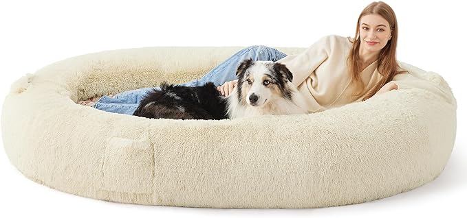 • Orthopedic Support for Superior Comfort: Experience dreamy, restorative sleep with our therapeutic human dog bed. It features soothing and warm faux shag fur supported with a layer of memory foam and a layer of high-density support foam. This innovative combination distributes weight evenly, providing optimal pressure relief and joint support for you and your pet.